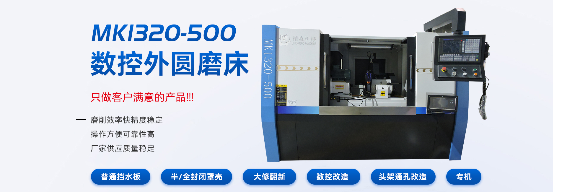無錫市精淼機械科技有限公司是一家專業(yè)生產(chǎn)外圓磨床,無心磨床,內(nèi)圓磨床的整合型磨床生產(chǎn)廠家。公司坐落于"魚米之鄉(xiāng)";之稱的江蘇無錫,位于美麗富饒的長江金三角地區(qū)---江蘇省無錫市錫山區(qū),交通便利,環(huán)境優(yōu)美。 公司主要產(chǎn)品有:磨床,外圓磨床,萬能外圓磨床,數(shù)控外圓磨床,數(shù)控端面外圓磨床,高精度外圓磨床,無心磨床,內(nèi)圓磨床,功能部件等。產(chǎn)品廣泛應用于航空、航天、軍工、汽車、船舶、能源、紡織、電子、軸承、冶金、機床工具、工程機械等行業(yè),在廣大用戶中享有盛譽。 無錫精淼機械科技有限公司一貫堅持“以人為本、以科技求發(fā)展、以質(zhì)量爭市場、以品牌創(chuàng)效益”的方針,嚴格奉行“誠信、守信”經(jīng)營理念。多年來我們不懈努力,開拓市場,始終堅持“質(zhì)量**,誠信優(yōu)先,服務保障”的原則,以一流的產(chǎn)品和精心的服務來滿足顧客的期望,保證客戶得到滿意的產(chǎn)品。 我公司一直秉持這品質(zhì)卓越、服務一流的理念,熱誠歡迎國內(nèi)外新老用戶誠摯合作,光臨指導,洽談業(yè)務。